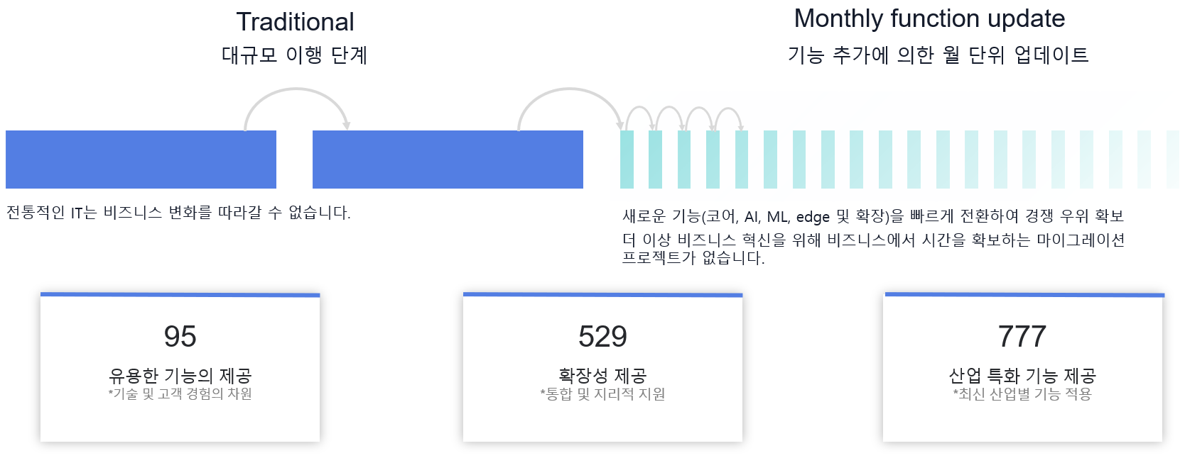 더 간단한 구매 (Simpler to buy) 대규모 선행투자가 없습니다. (H/W 등) 제품이 아니라 서비스를 구매하는 것입니다 |