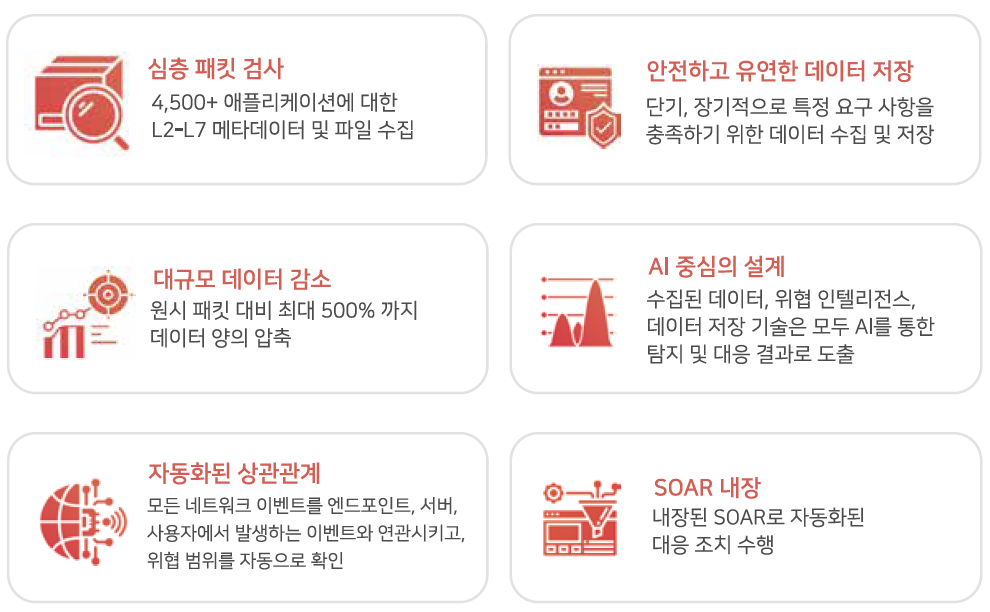 - 지속 가능한 보안 관리 체계 구축: AI/머신러닝 기반의 위협 분석은 지속적으로 학습하여, 새로운 위협에도 유연하게 대응할 수 잇는 보안 체계를 만들어 드립니다.