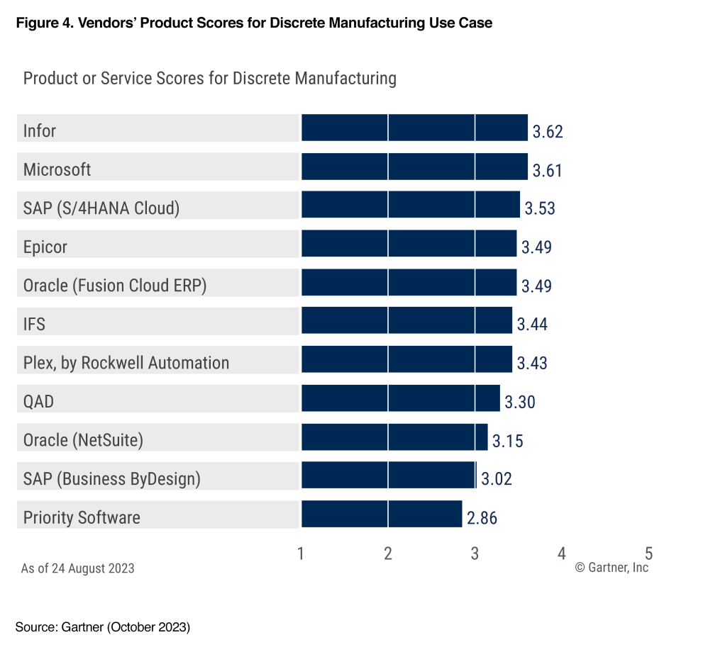 또한 개별 제조 사용 사례에서 Infor가 가장 높은 점수를 받았습니다: