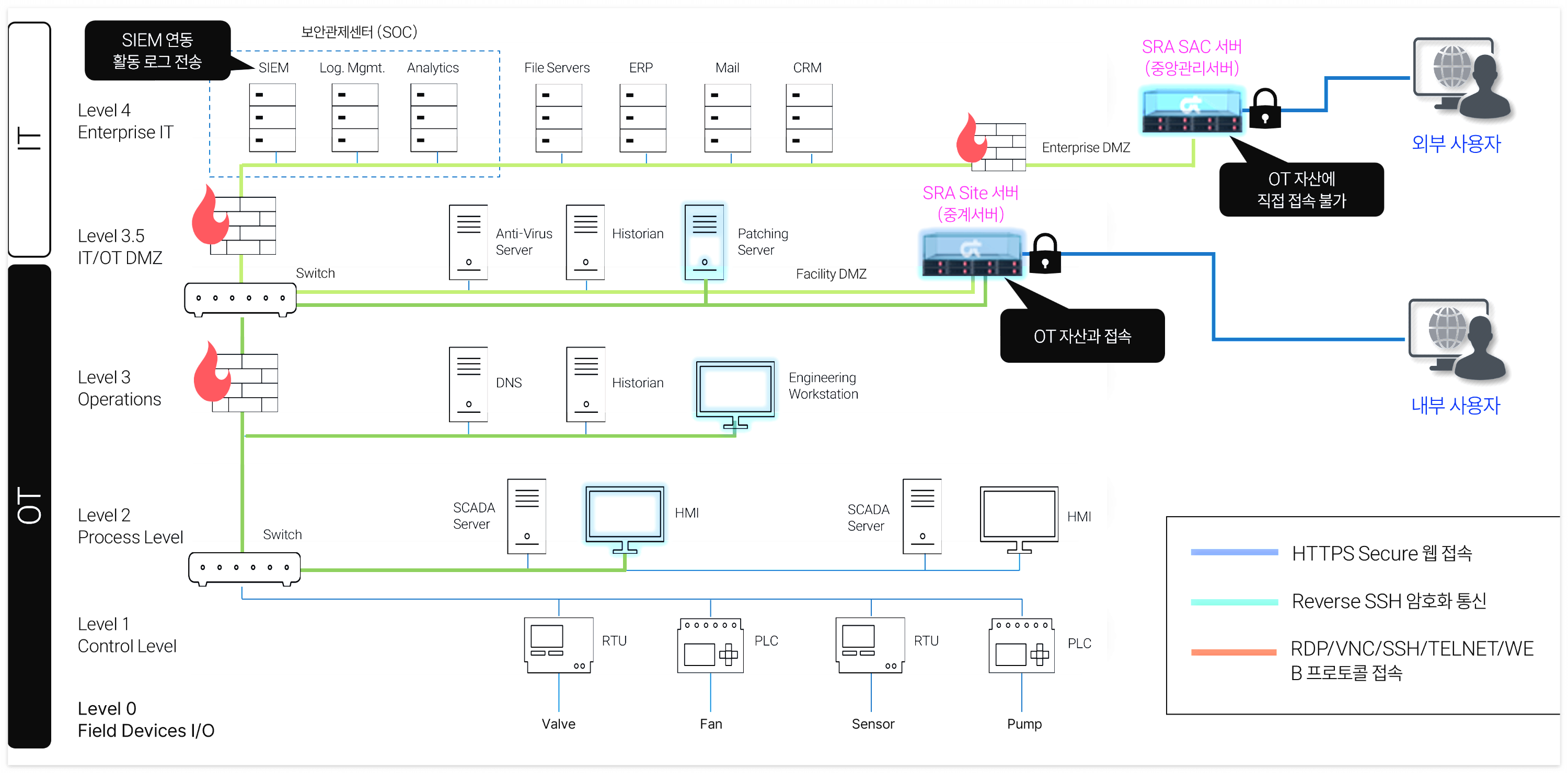 - 취약점 제거: 원격 접속은 공격자가 OT 네트워크에 접근할 수 있는 가장 쉬운 경로 중 하나입니다. 따라서 원격 접속은 엄격히 통제되어야 합니다.
