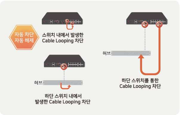Cable Looping 발생 포트를 자동으로 탐지하고 차단합니다.